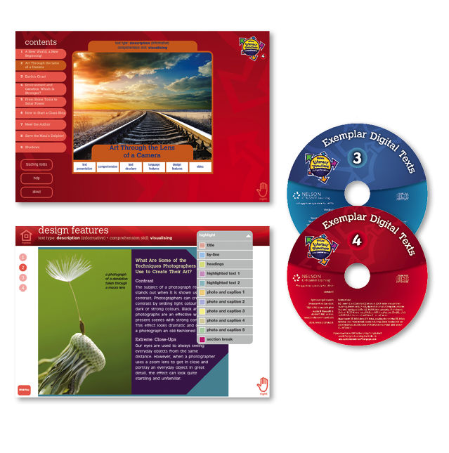 The Nelson Literacy Directions Comprehension Exemplar Digital Texts software is designed for modelling the use of the core comprehension strategies and skills via whole-class explicit instruction. There is an Exemplar Digitial Text for each of the key text types. Functionality includes text editing, annotations and note-making.